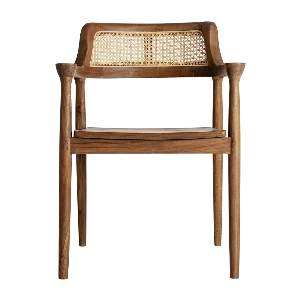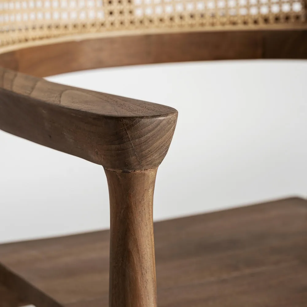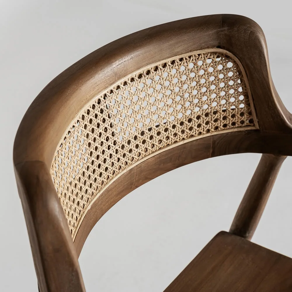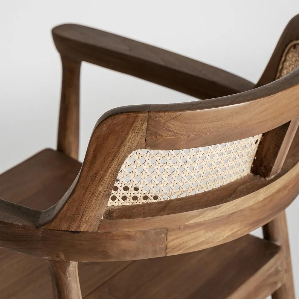 Silla chanac de estilo art deco fabricado en madera de teka en color marrón combinado con ratán.