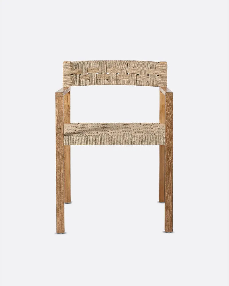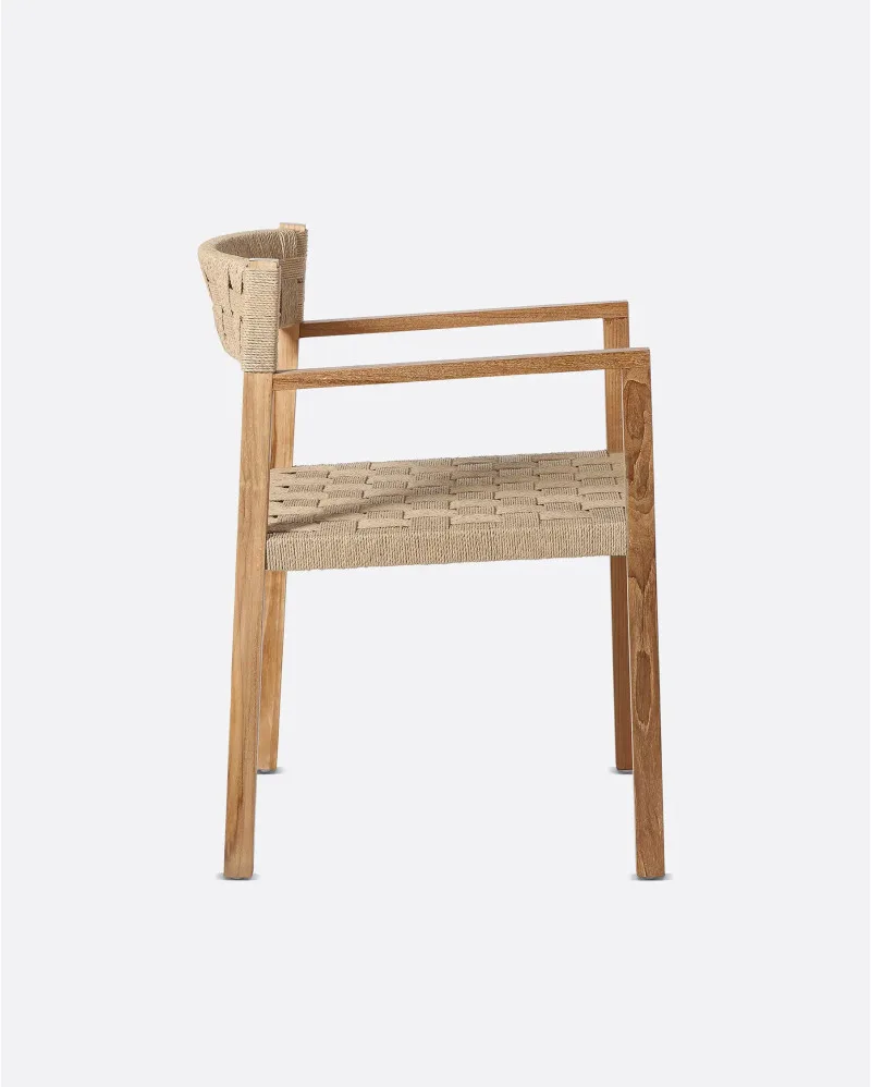 • Composición material: Madera de teca (estructura) y cuerda de papel trenzada (asiento)