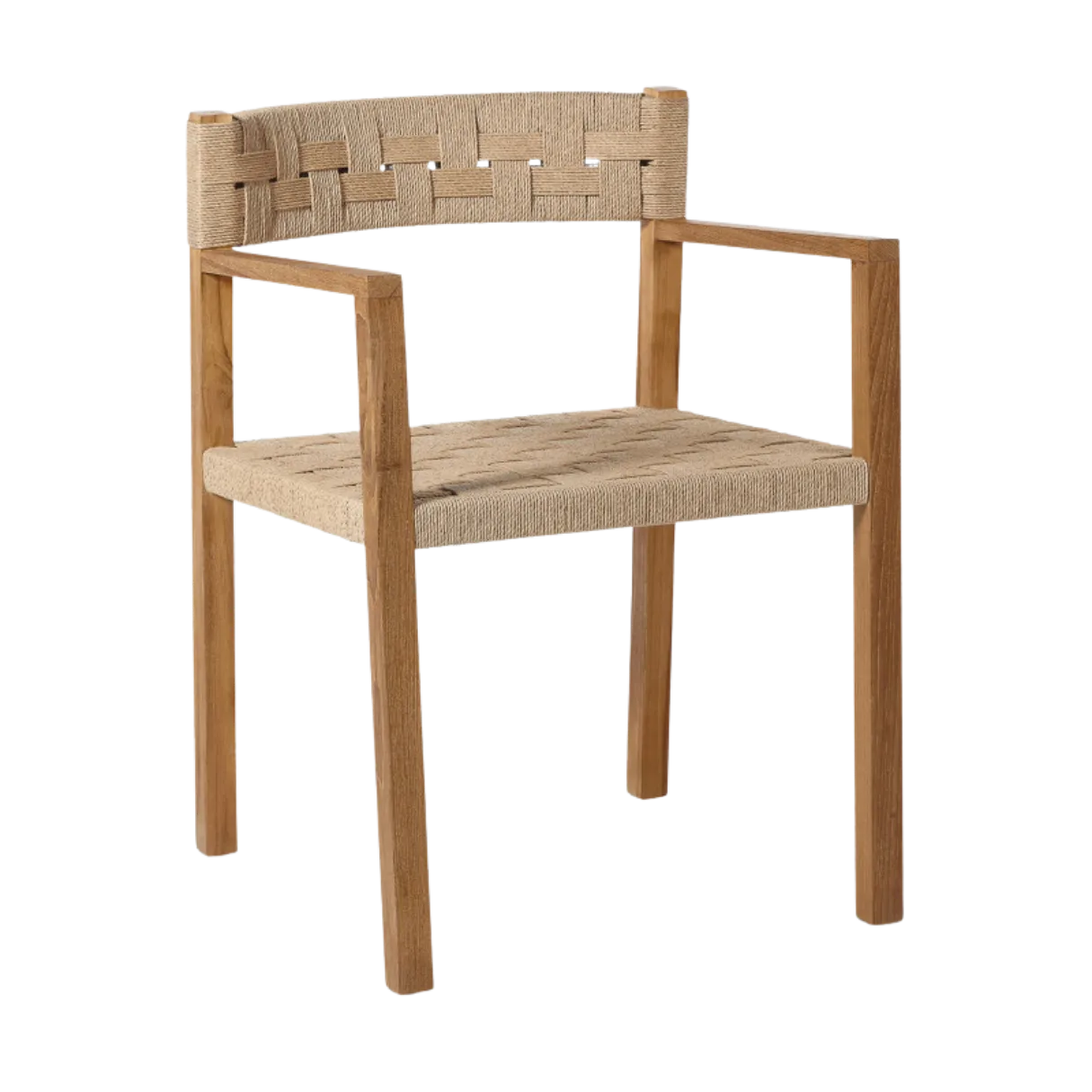 La silla con reposabrazos CORA de Dareels es una pieza que refleja el equilibrio perfecto entre artesanía, sostenibilidad y diseño atemporal. Fabricada en madera de teca y con asiento de cuerda de papel trenzada a mano, transmite una estética cálida y orgánica que encaja con naturalidad en comedores, zonas de estar o proyectos de interiorismo con sensibilidad contemporánea.