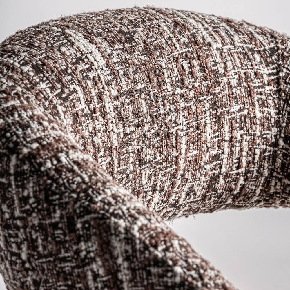La silla Kamenz destaca por su diseño moderno y su tapizado en poliéster marrón jaspeado, que aporta profundidad y carácter. Su estructura en madera de caucho y roble marrón refuerza su estética natural, ofreciendo una pieza ligera, robusta y versátil para comedores o espacios de reunión.