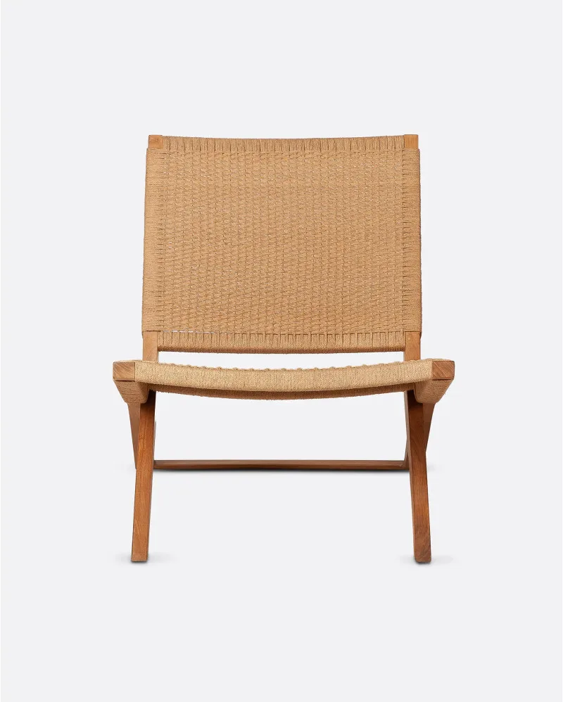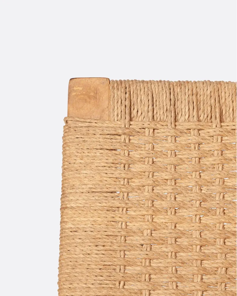 • Material: madera de teca (estructura) y cuerda de papel (asiento)