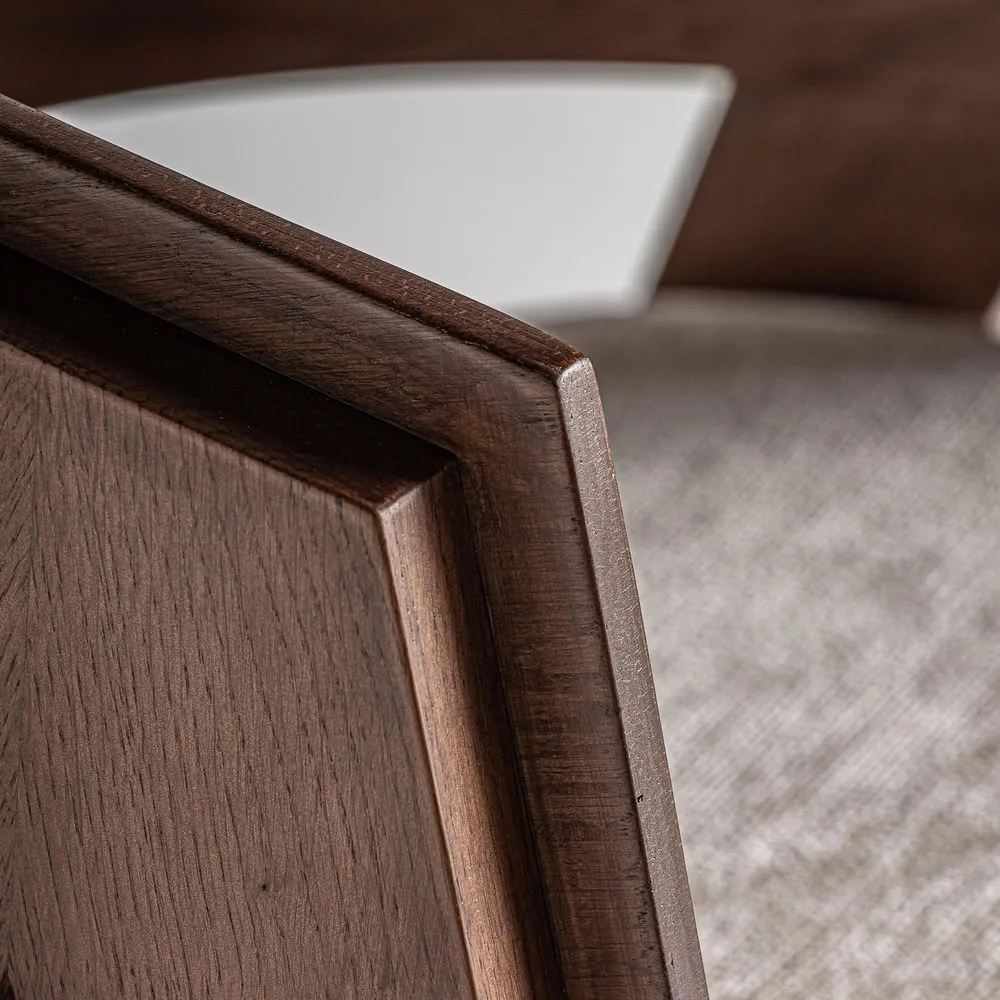 Silla madiran de estilo colonial fabricado en madera roble en color marrón combinado con poliéster en color beige.