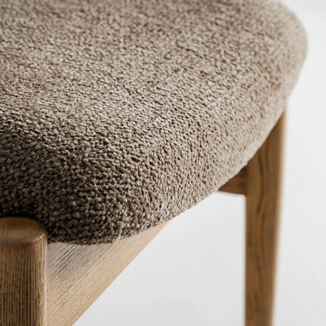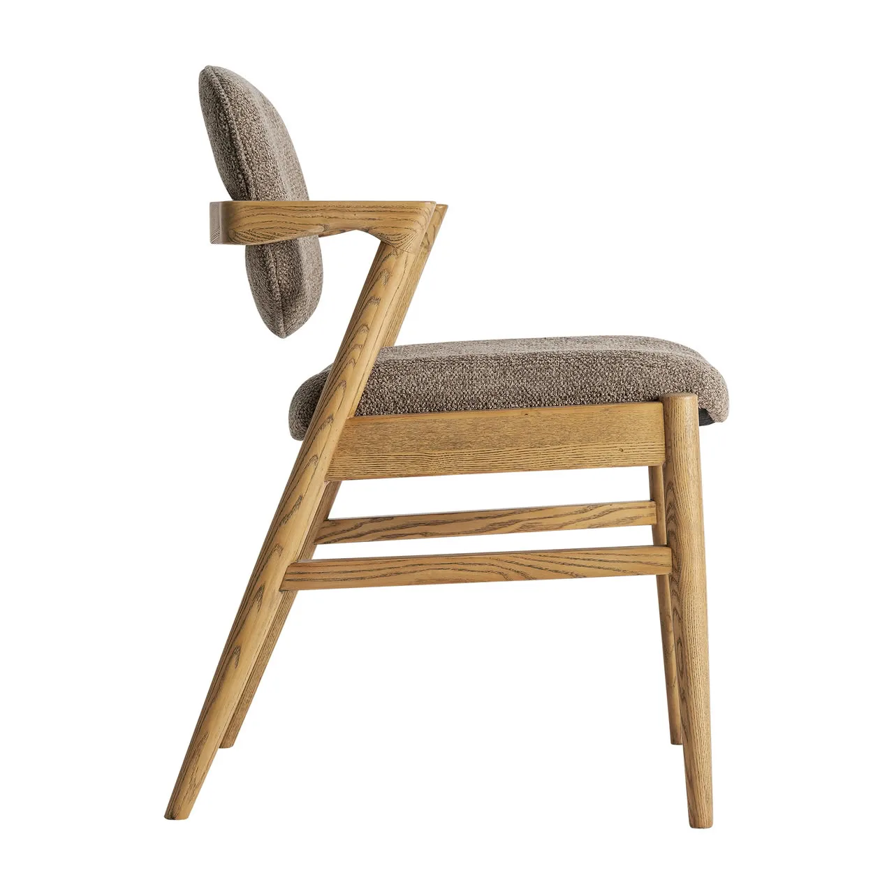 Silla Namur de estilo contemporáneo, fabricado en madera de fresno en color marrón, combinado con lino en color topo y algodón.