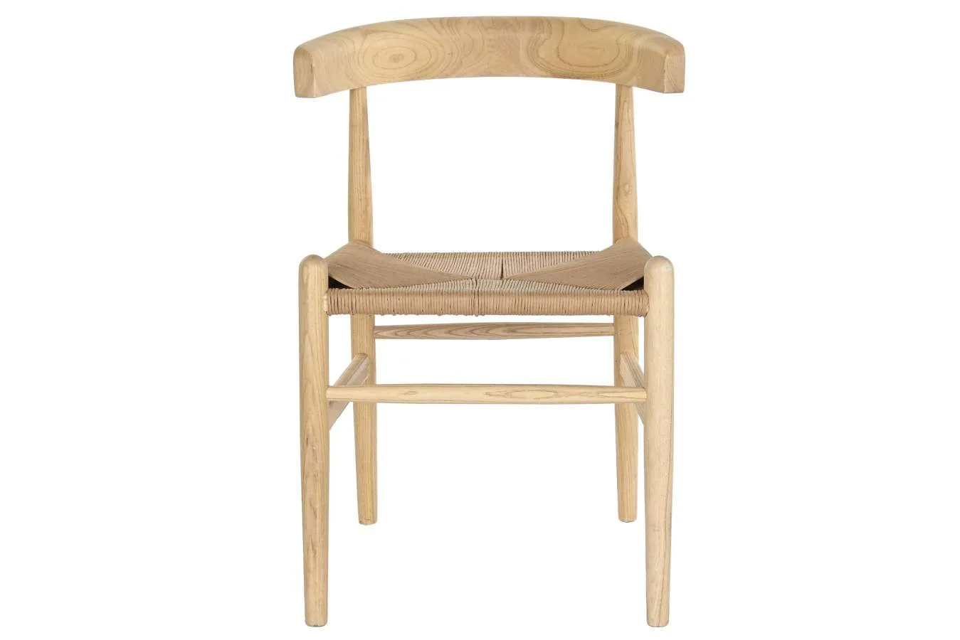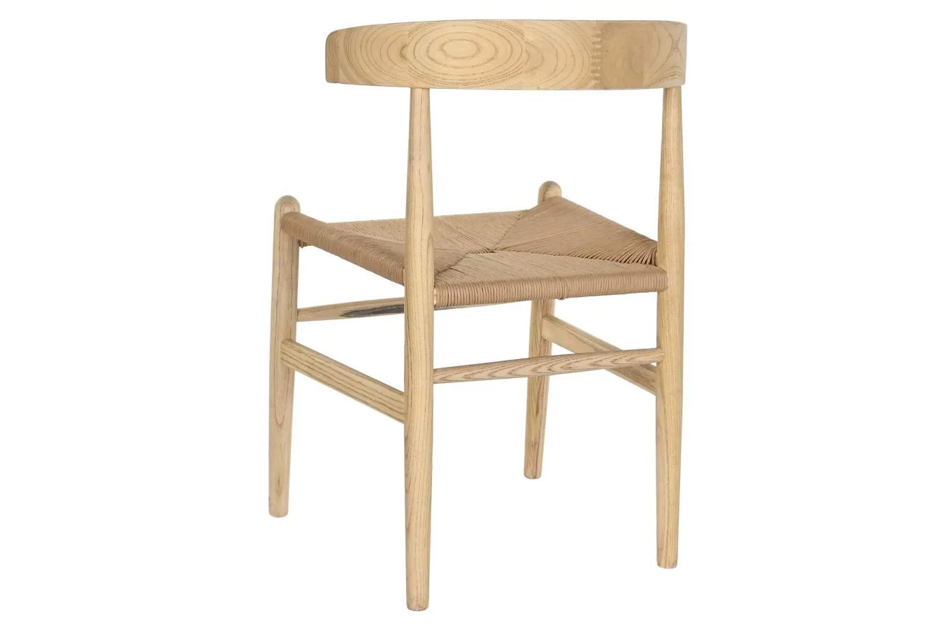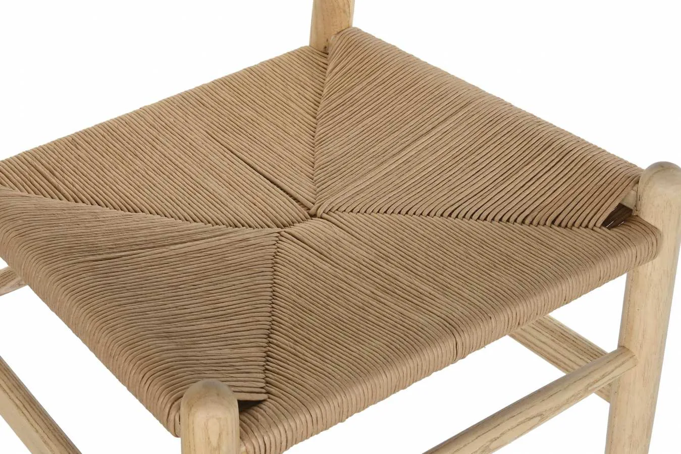 Silla de madera de olmo en color natural con asiento de fibra, de estilo cottage y apta para hostelería. Su diseño sencillo y sus materiales naturales la convierten en una opción versátil y duradera para comedores domésticos, restaurantes y cafeterías que buscan una silla de madera de olmo con asiento de fibra natural resistente y con un acabado cálido y orgánico.