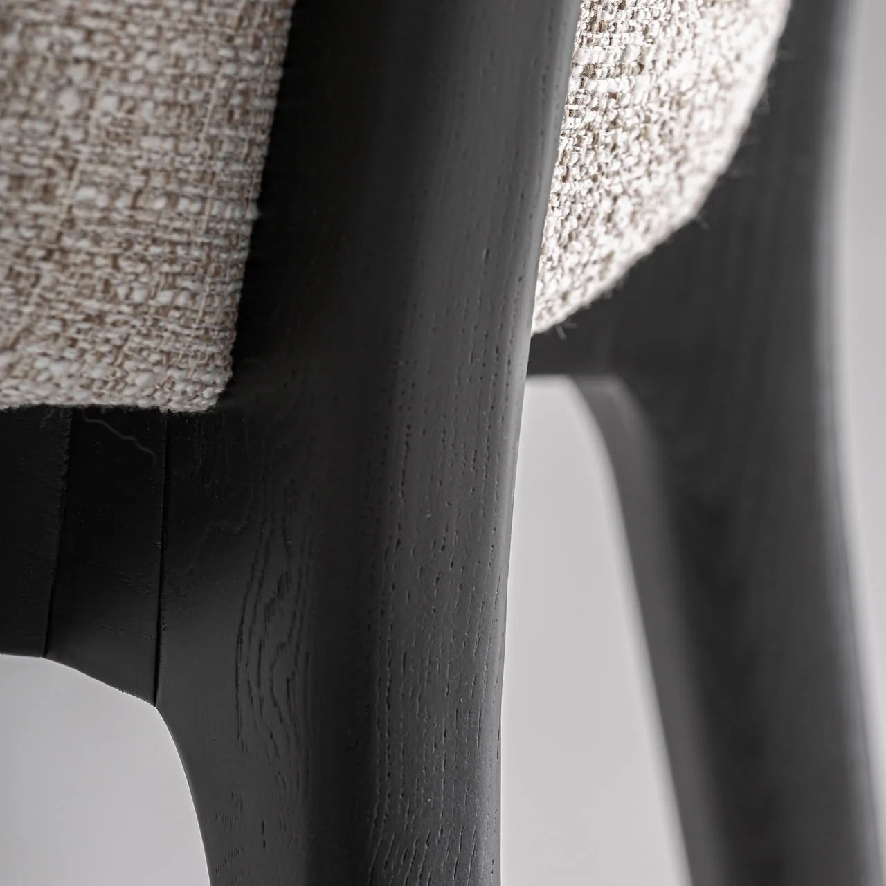 Silla Sirius de estilo contemporáneo, fabricado en poliéster en color beige, combinado con madera de fresno en color negro.