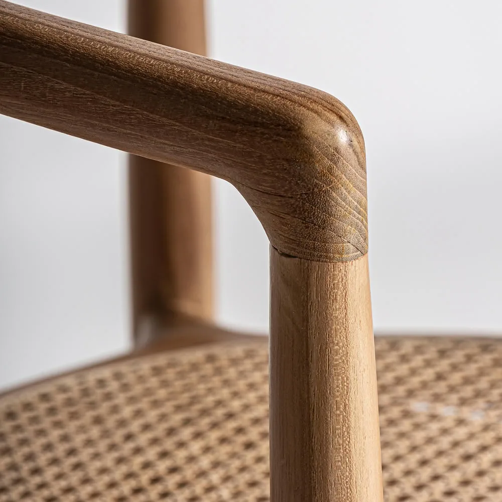 Silla tostily de estilo contemporáneo fabricado en madera de teka en color marrón combinado con ratán en color marrón claro.