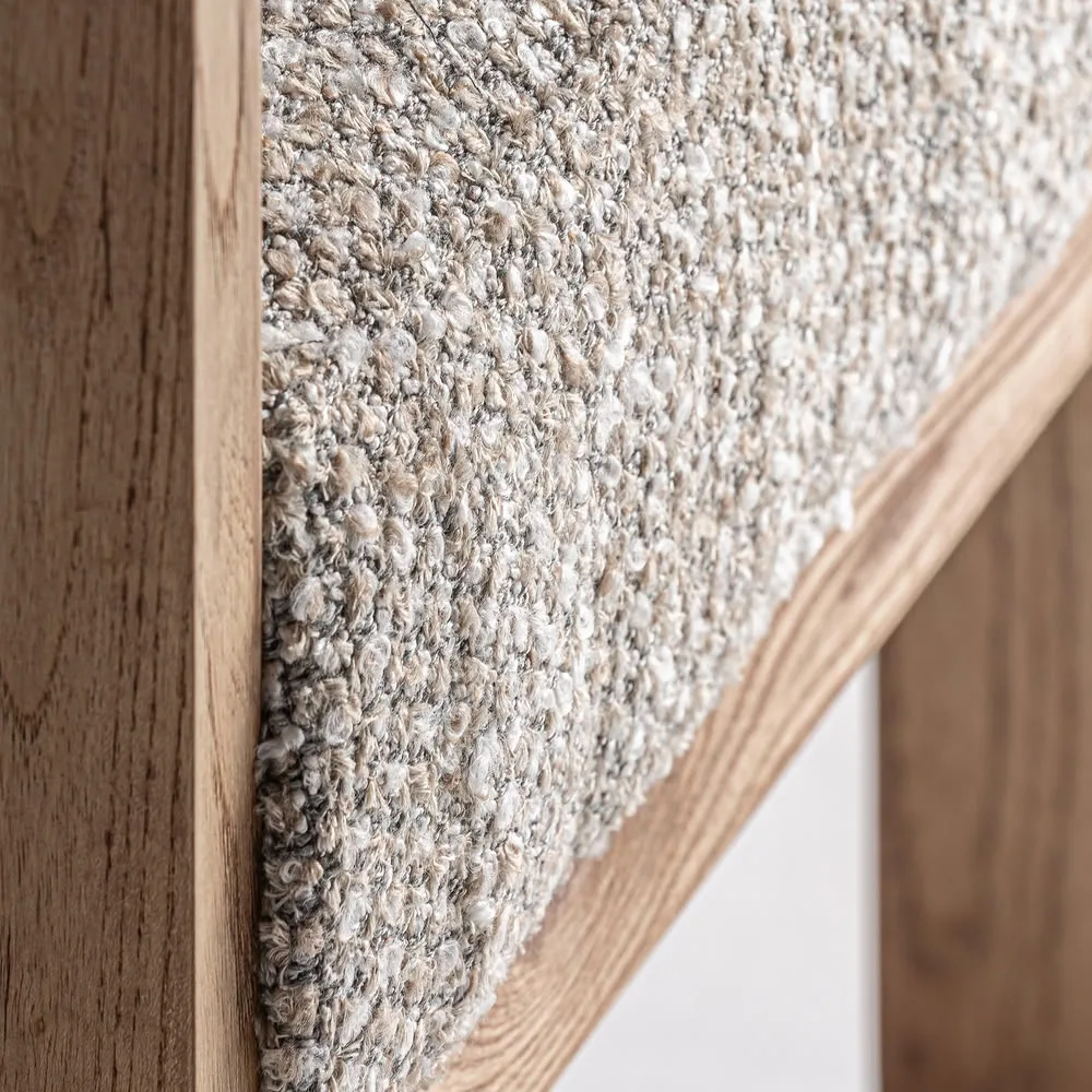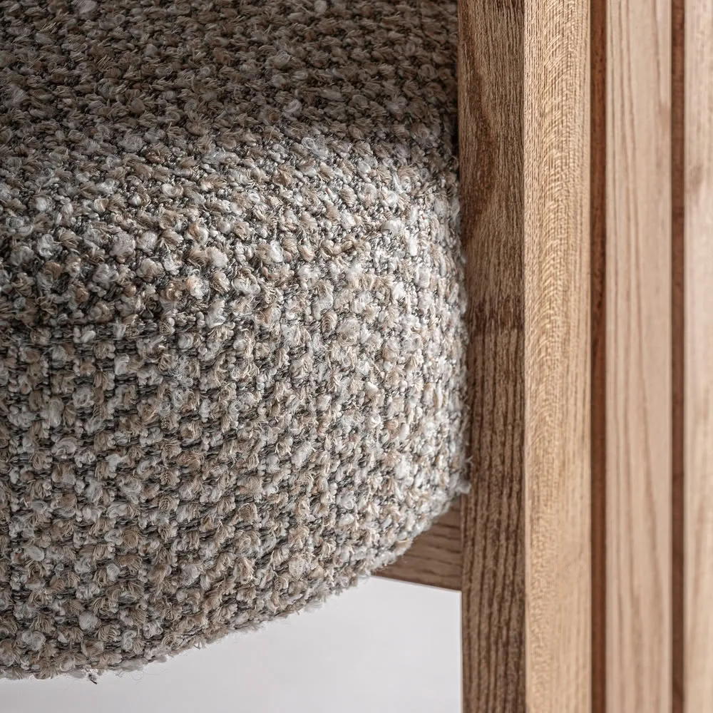 Silla Ustka de estilo contemporáneo fabricado en poliéster en color gris con acabado jaspeado combinado con madera roble en color marrón claro.