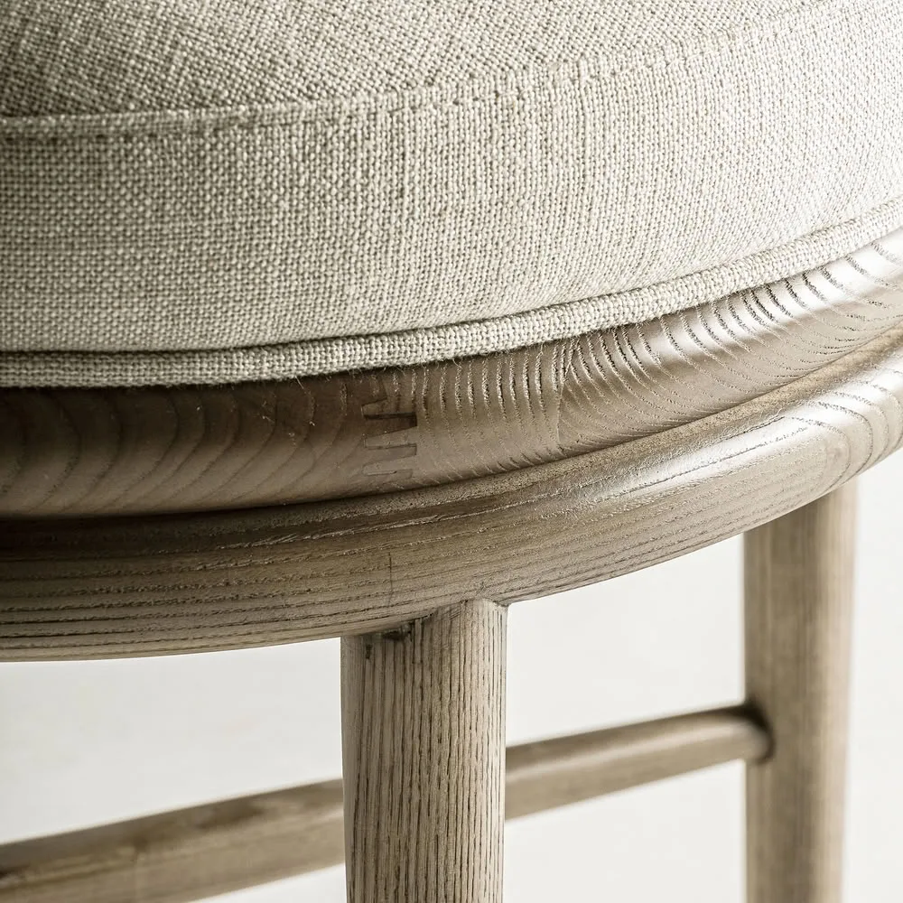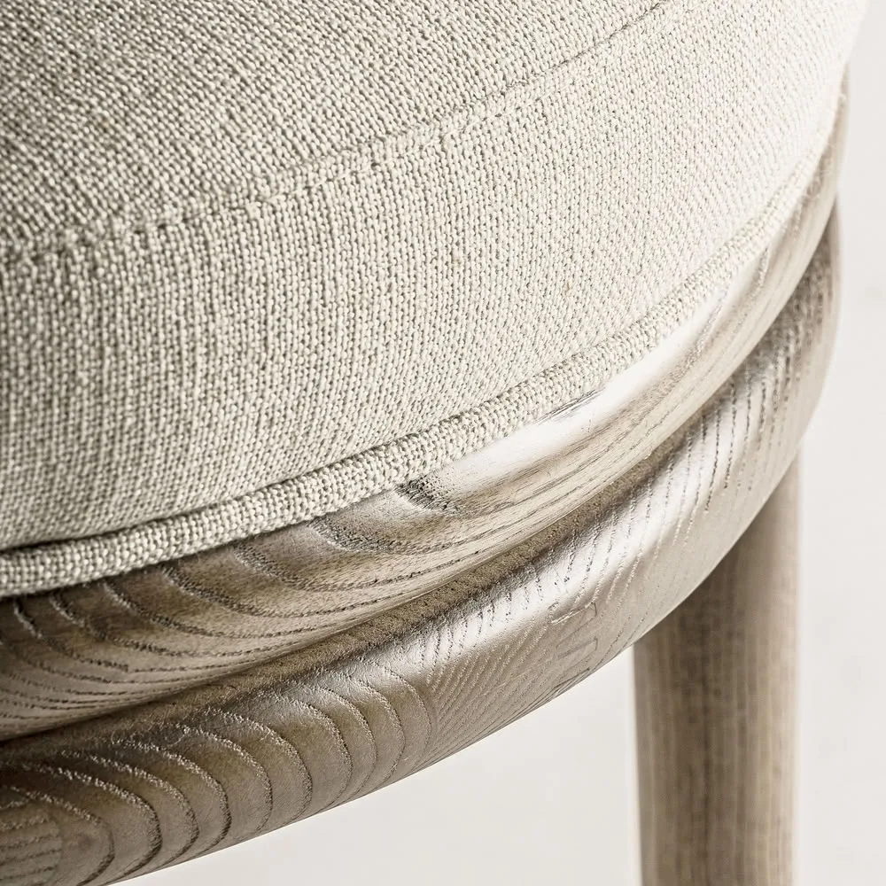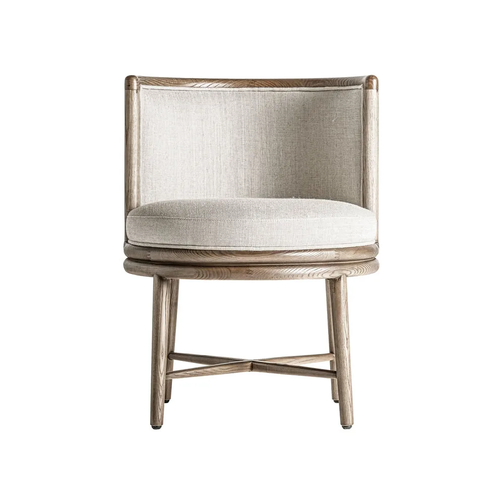 Silla varaire de estilo colonial fabricado en madera roble en color marrón combinado con poliéster en color blanco.