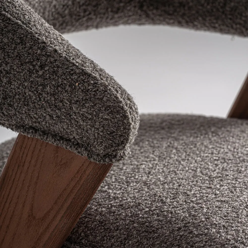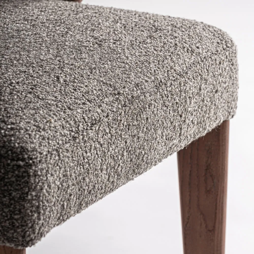 Silla Veney de estilo contemporáneo fabricado en poliéster en color gris con acabado jaspeado combinado con madera roble en color marrón y madera de caucho.