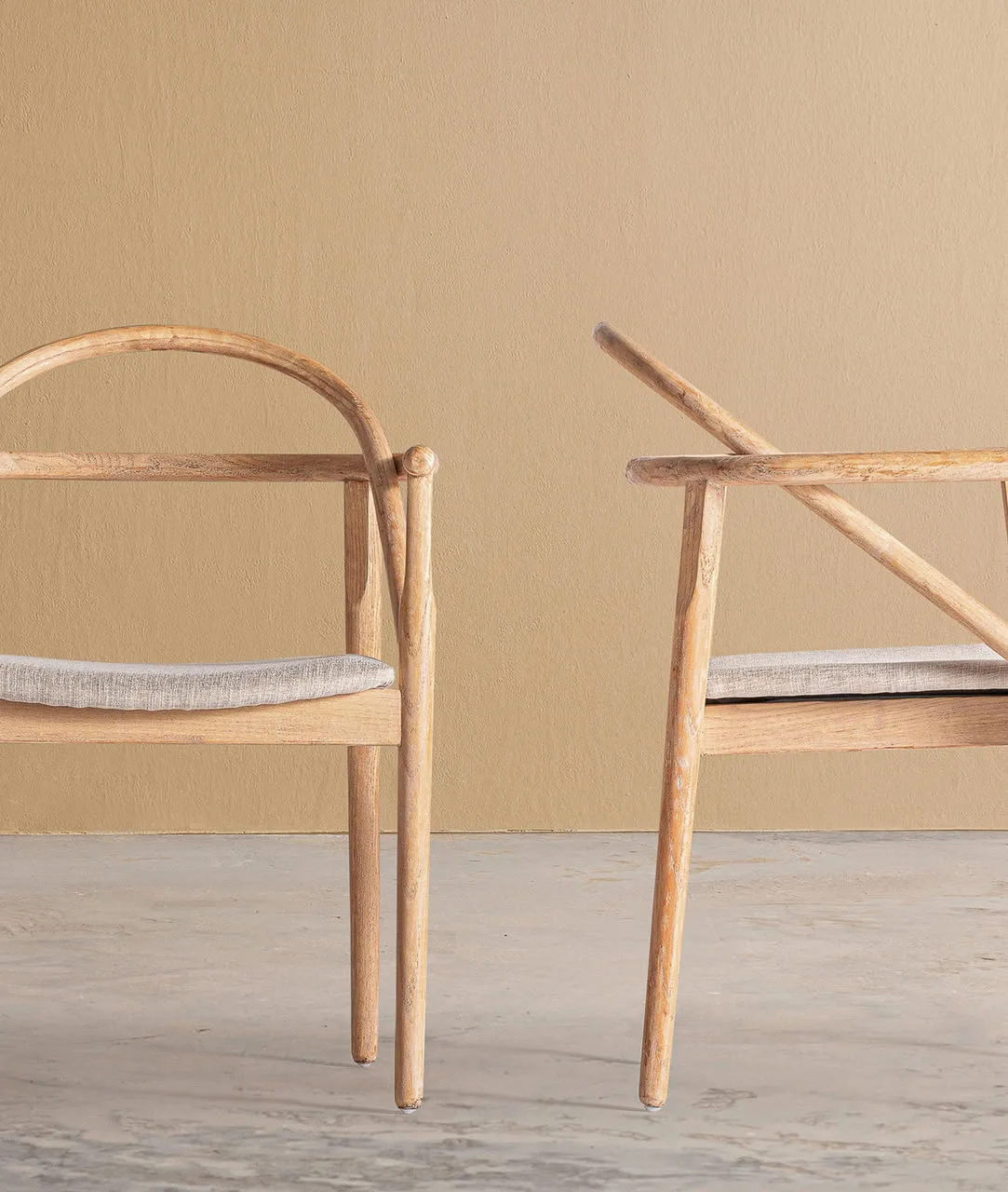 Con una silueta delicadamente arqueada y líneas depuradas, la silla Yviers, de Kodu Homedesign en madera de olmo claro aporta calidez y naturalidad a cualquier espacio. Su respaldo de formas suaves y los sutiles detalles geométricos reflejan una estética contemporánea, mientras que el asiento acolchado en tela de lino beige ofrece una comodidad envolvente.