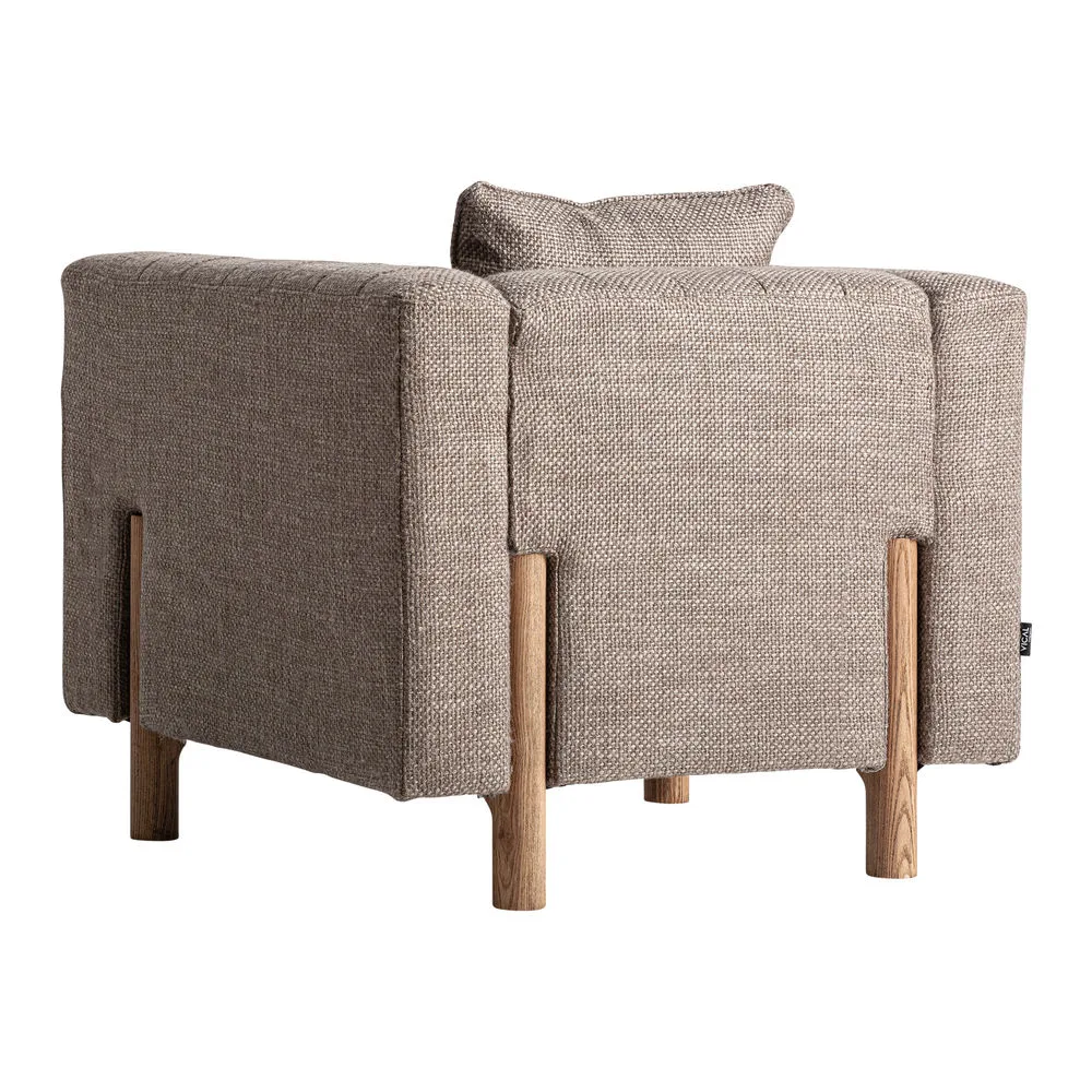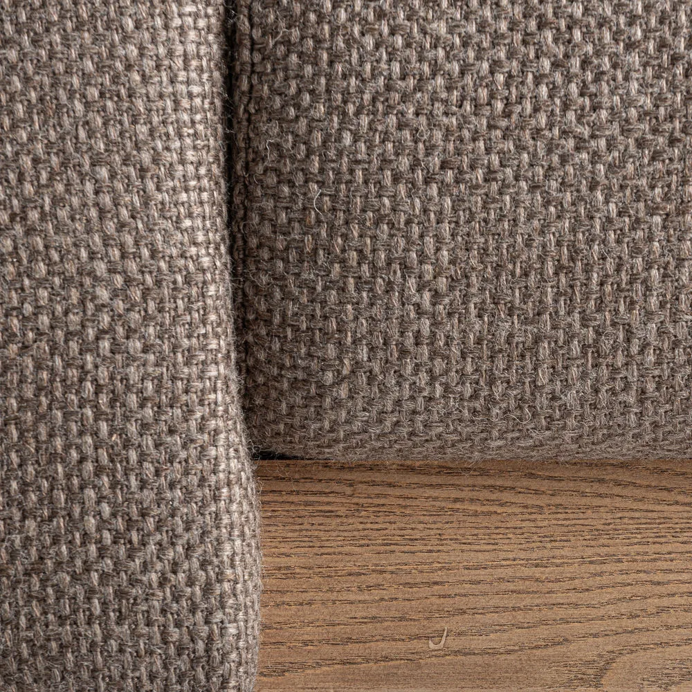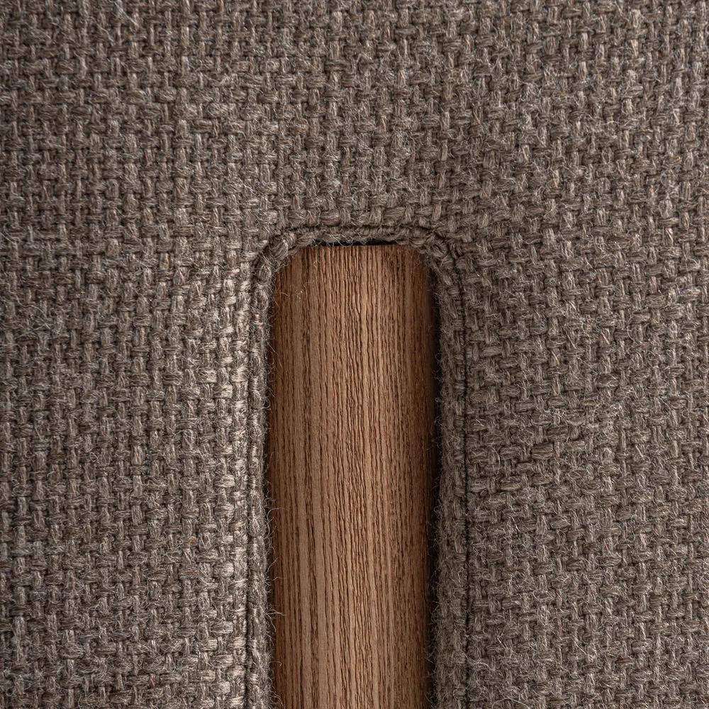 Gracias a su relleno de espuma y su cojín a juego, ofrece una comodidad agradable y un apoyo firme. Su presencia serena y su acabado textil natural lo convierten en una pieza versátil que encaja fácilmente en interiores mediterráneos y atmósferas relajadas.