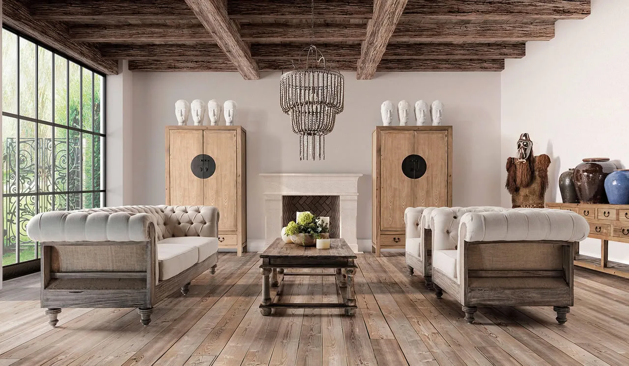 El Sillón Gore de VICAL home, estilo Chesterfield y medidas 113x90x80cm, combina la clásica elegancia con la funcionalidad. Fabricado en resistente madera tropical y tapizado en un delicado color beige, este sillón chesterfield de tela aporta un toque de sofisticación y confort que realza cualquier espacio de su hogar.