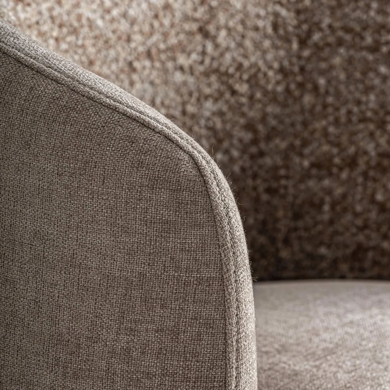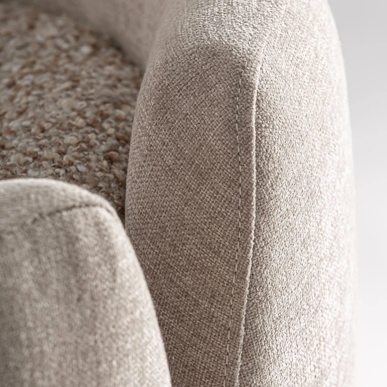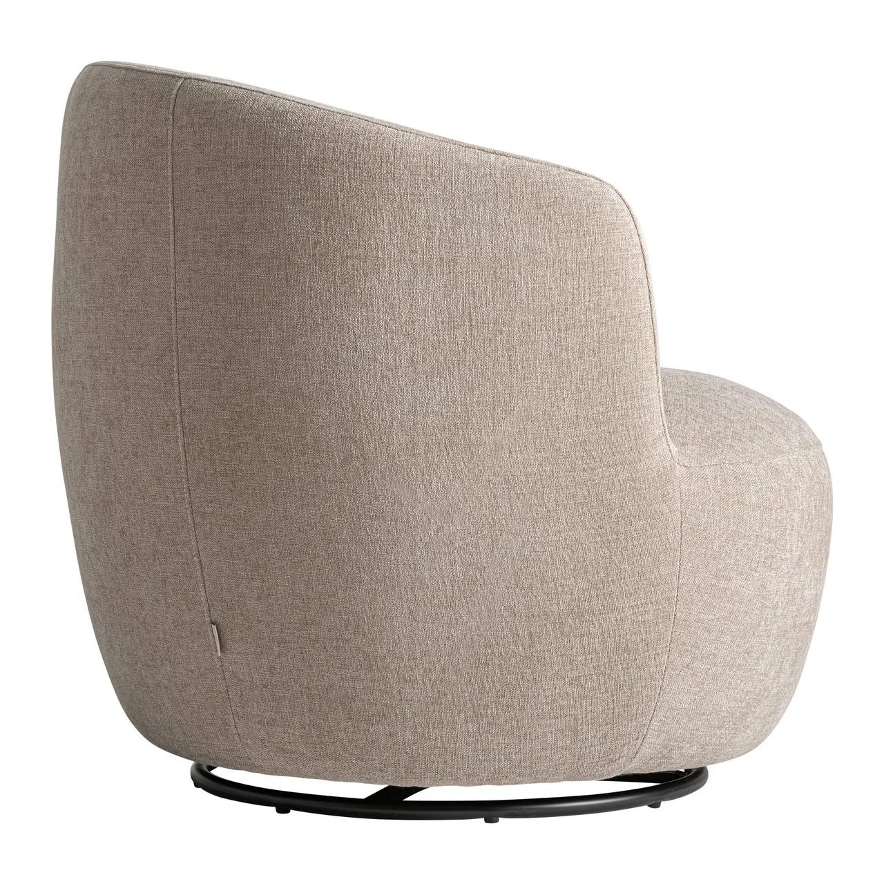 Sillón giratorio Vipiteno de estilo contemporáneo fabricado en poliéster en color beige con acabado chenilla combinado con hierro en color negro y madera de pino.