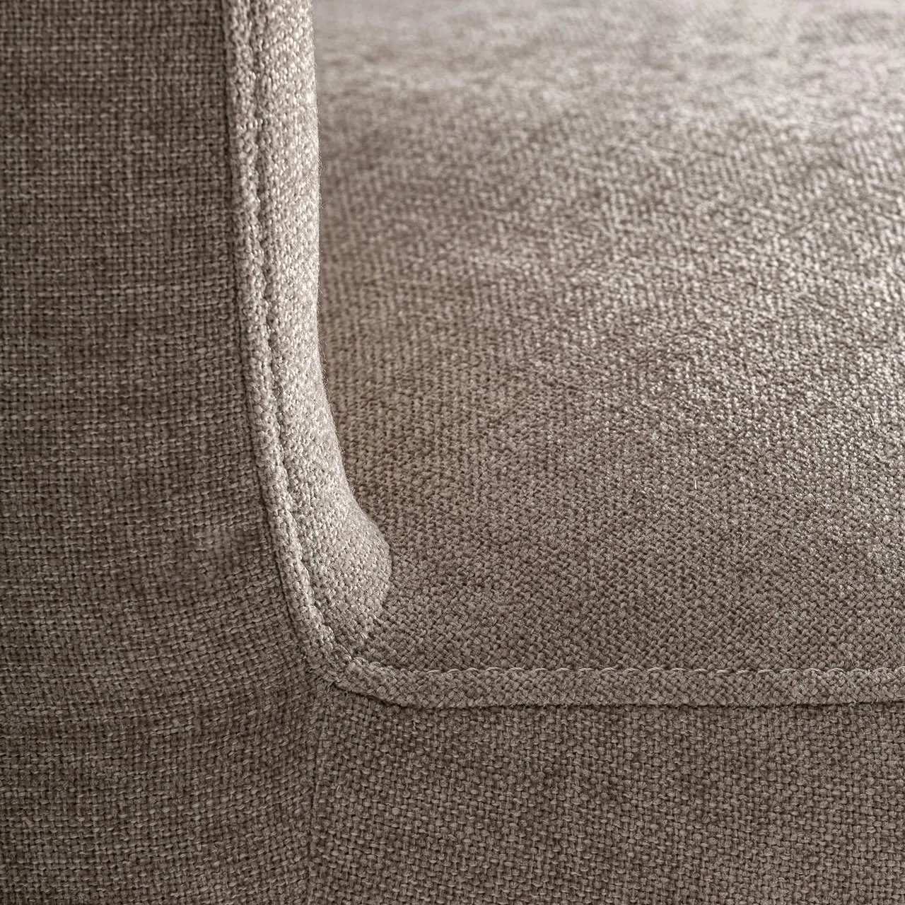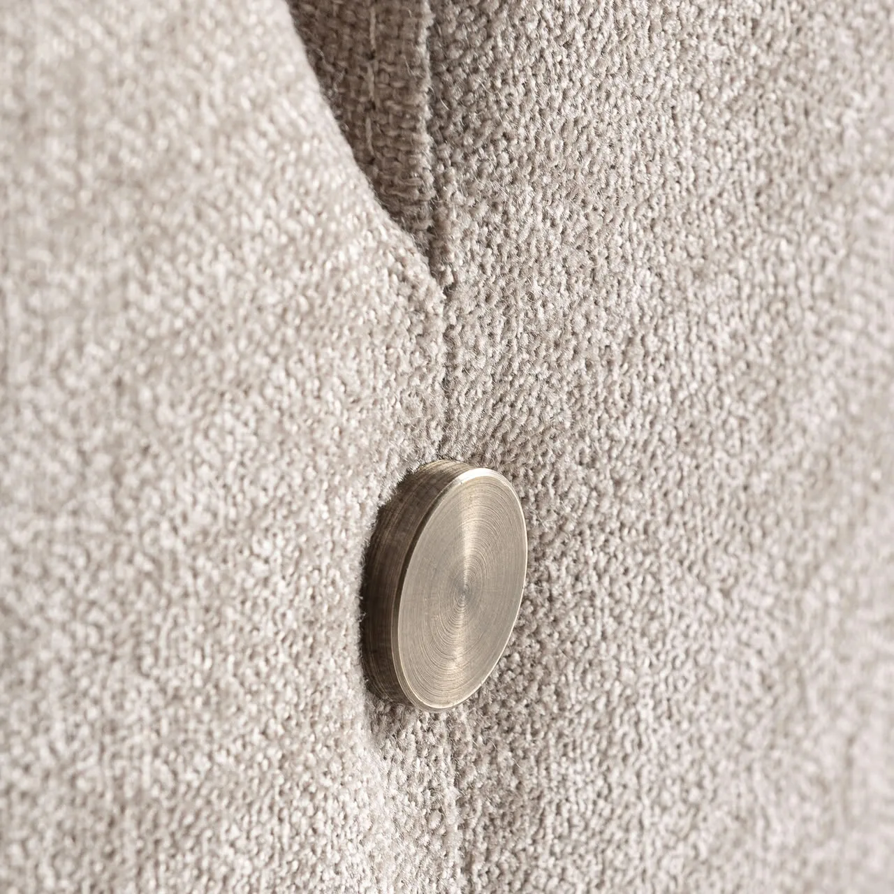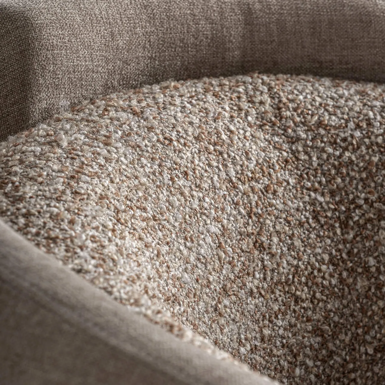 Sillón giratorio Vipiteno de estilo contemporáneo fabricado en poliéster en color beige con acabado chenilla combinado con hierro en color negro y madera de pino.