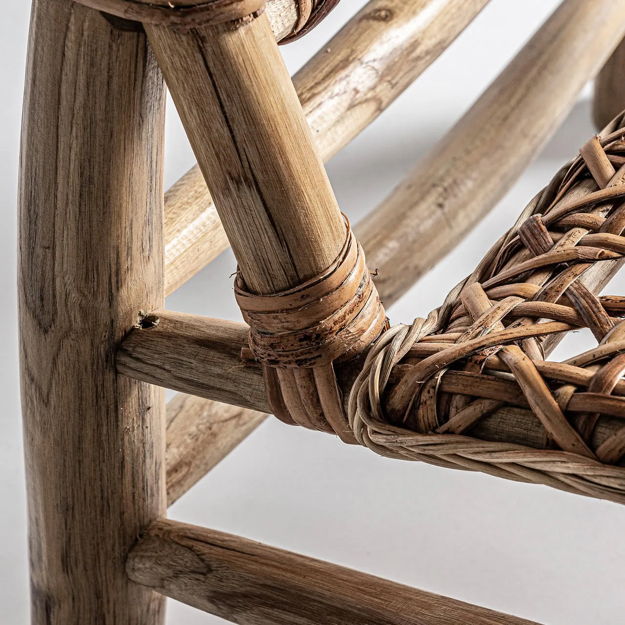 Inspirado en la naturaleza y la artesanía, el sillón de madera y ratán Luban de Vical home, de 62x72x77cm, es un homenaje al arte tradicional. La madera de teca se entrelaza hábilmente con el ratán para crear un sillón artesanal que es tan cómodo como estéticamente atractivo, proporcionando un toque de naturaleza a tu hogar.