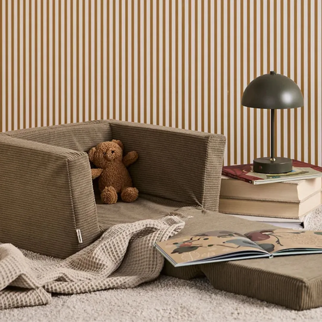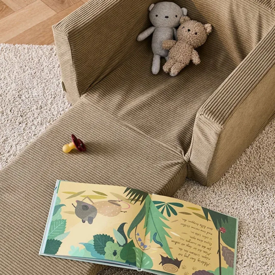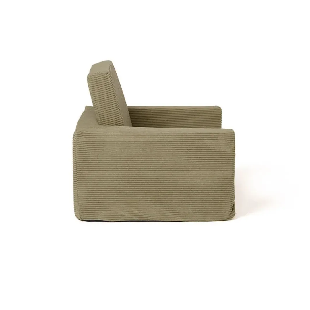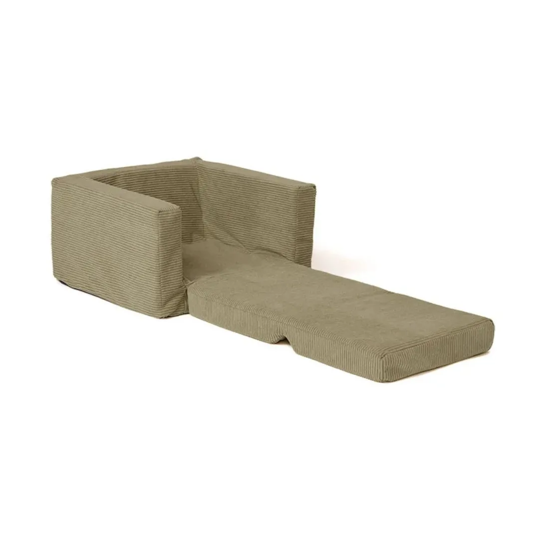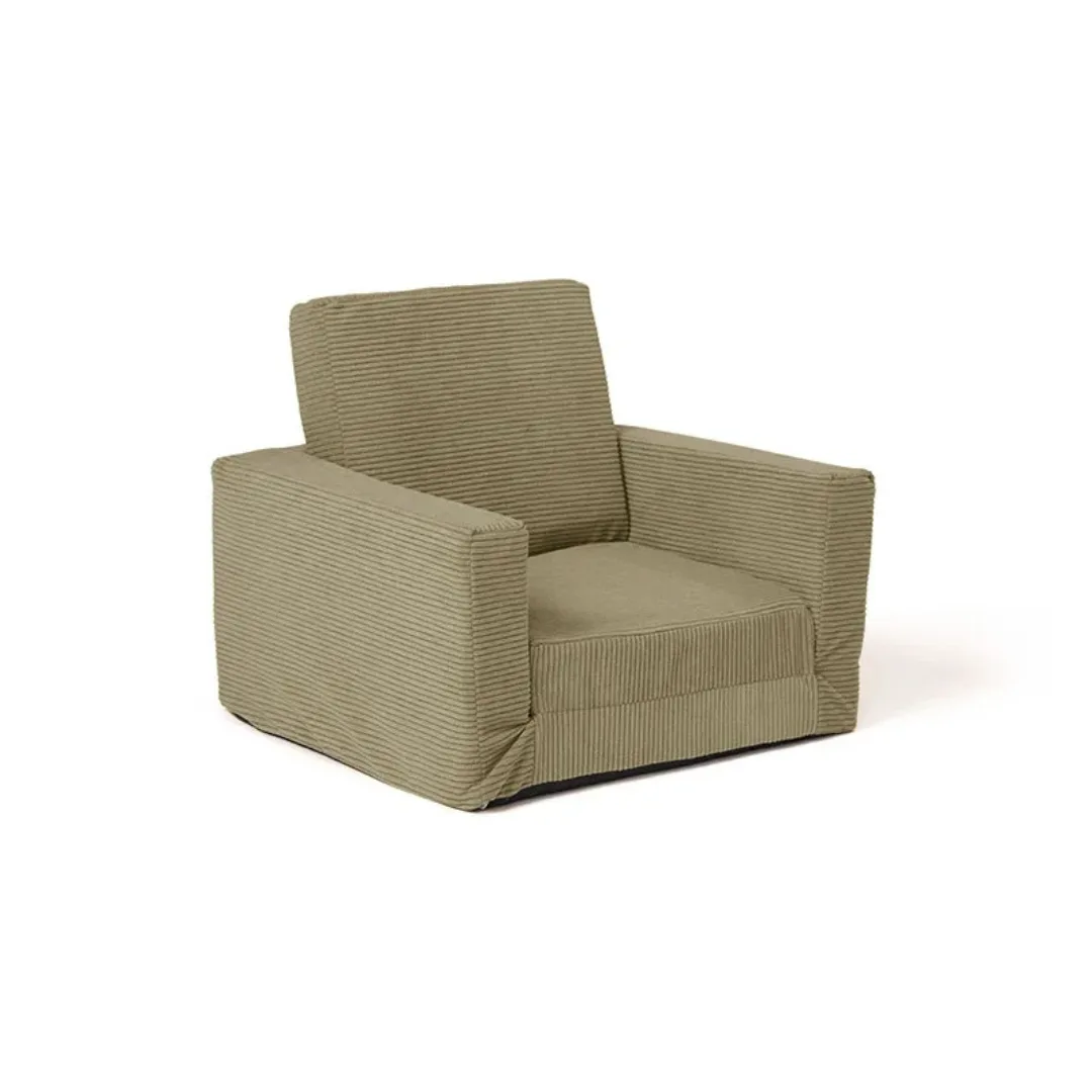 El sillón plegable verde para niños combina comodidad y funcionalidad en un diseño ligero y acogedor. Ideal para leer, ver películas o descansar después de un día activo, este sillón de pana suave aporta un toque cálido y moderno a la habitación infantil. Su estructura 2 en 1 permite desplegarlo fácilmente y transformarlo en un pequeño colchón, perfecto para una siesta o momentos de relax.