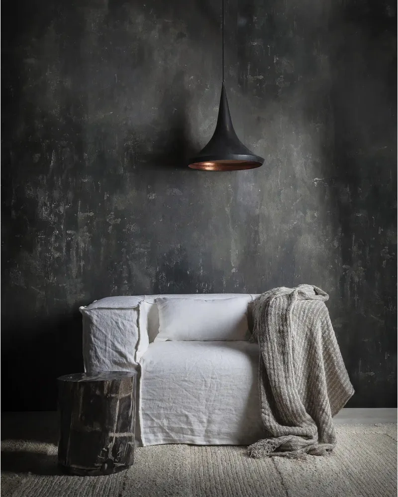 Su diseño bajo y envolvente, junto al acabado en lino lavado a la piedra, aporta frescura, confort y una estética mediterránea contemporánea.