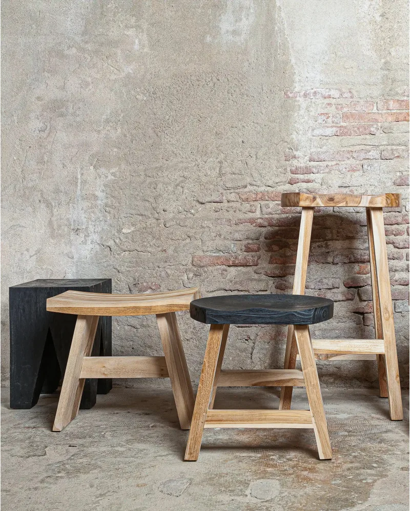 • Observaciones: Al estar elaborado artesanalmente con madera reciclada, cada taburete presenta vetas, marcas y variaciones de tono que refuerzan su carácter único.