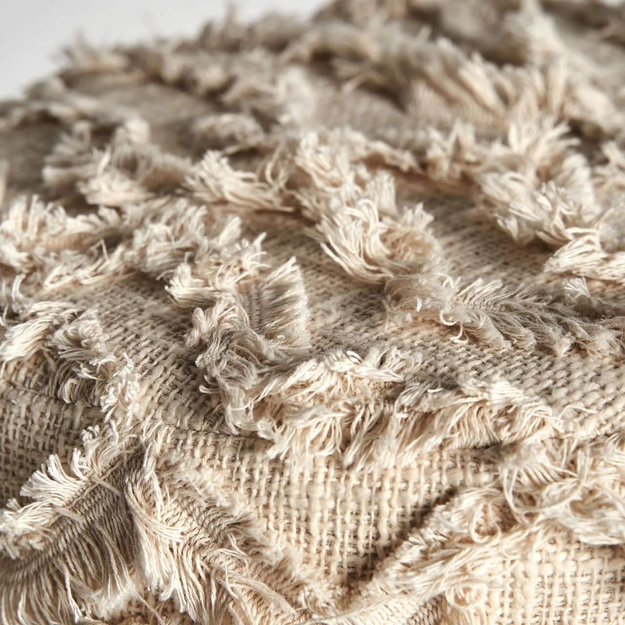 El taburete boho Mittet, combina algodón crema con fibras naturales en tonos marrón claro. Su diseño desenfundable y acabado artesanal lo convierten en una pieza ligera y versátil. Ideal para ambientes relajados con alma natural. Una propuesta de VICAL.