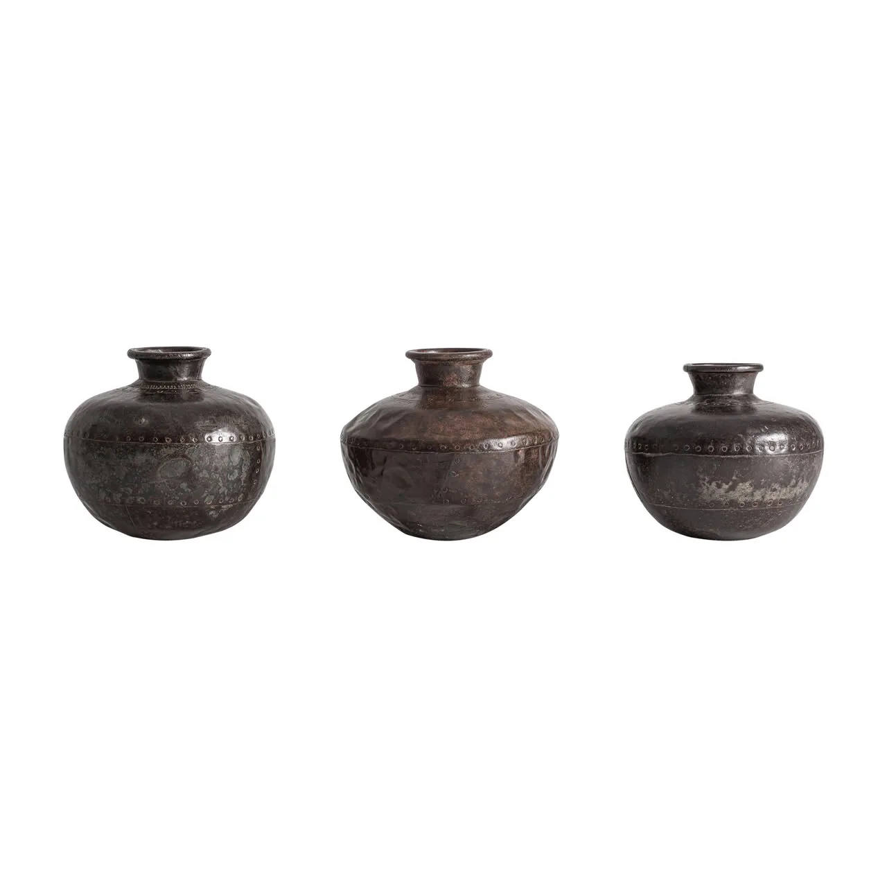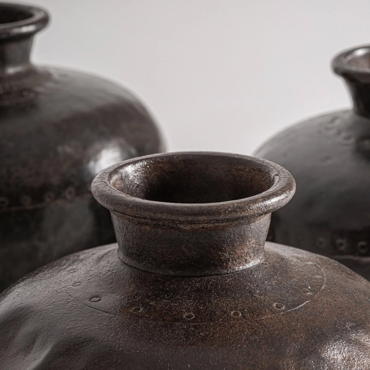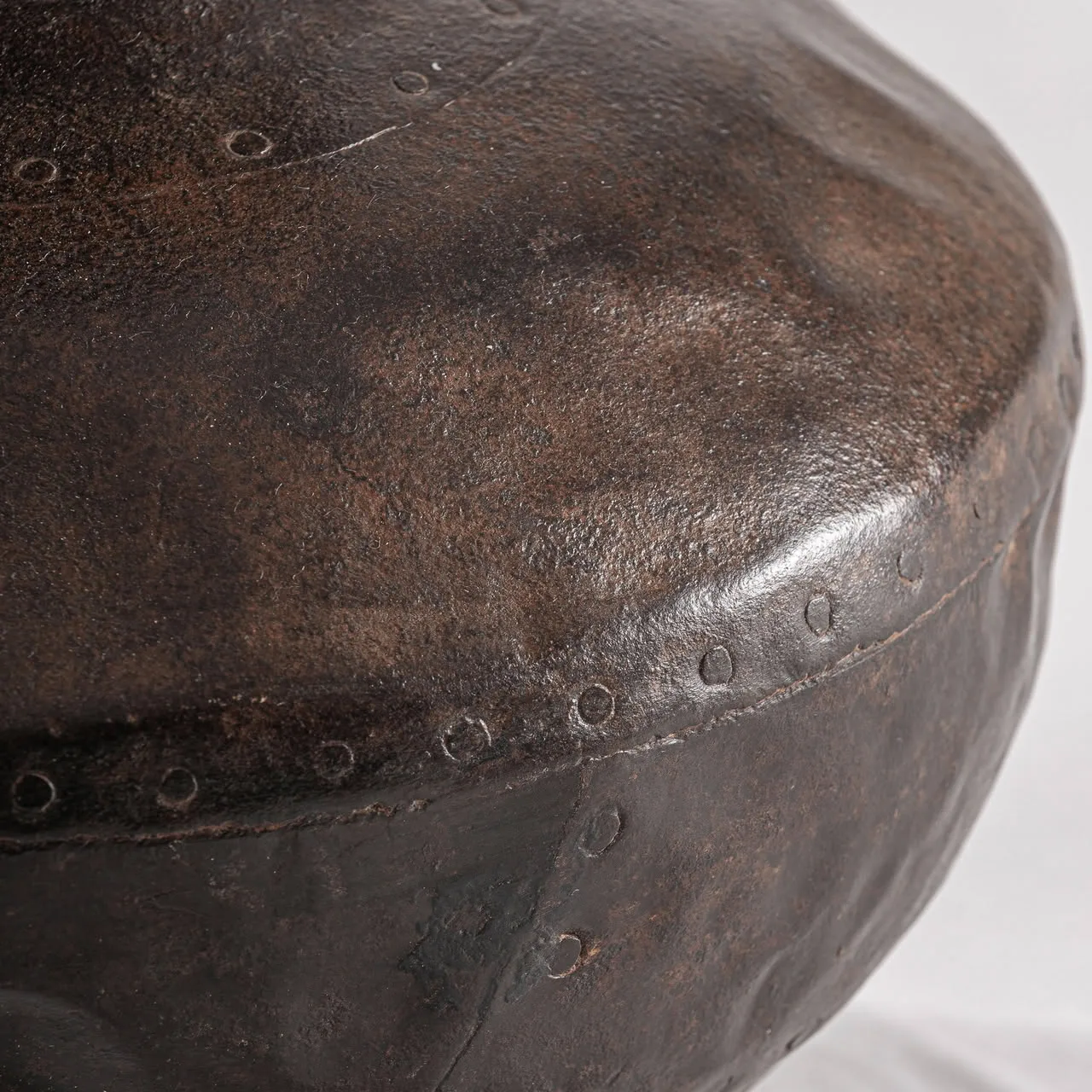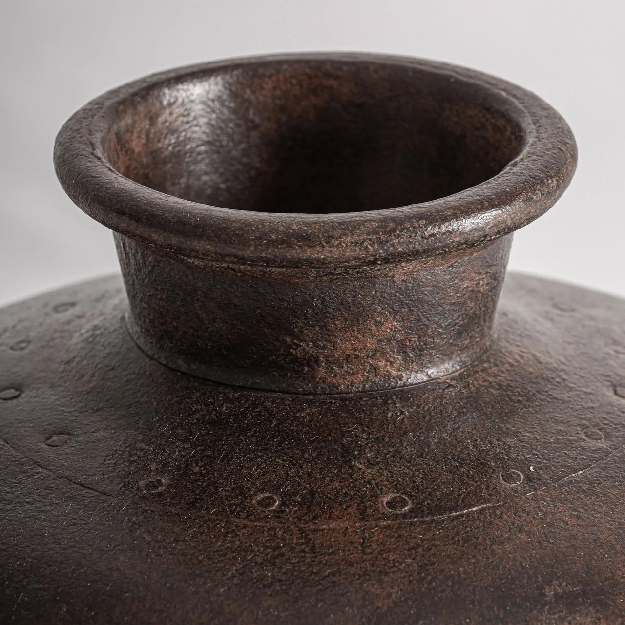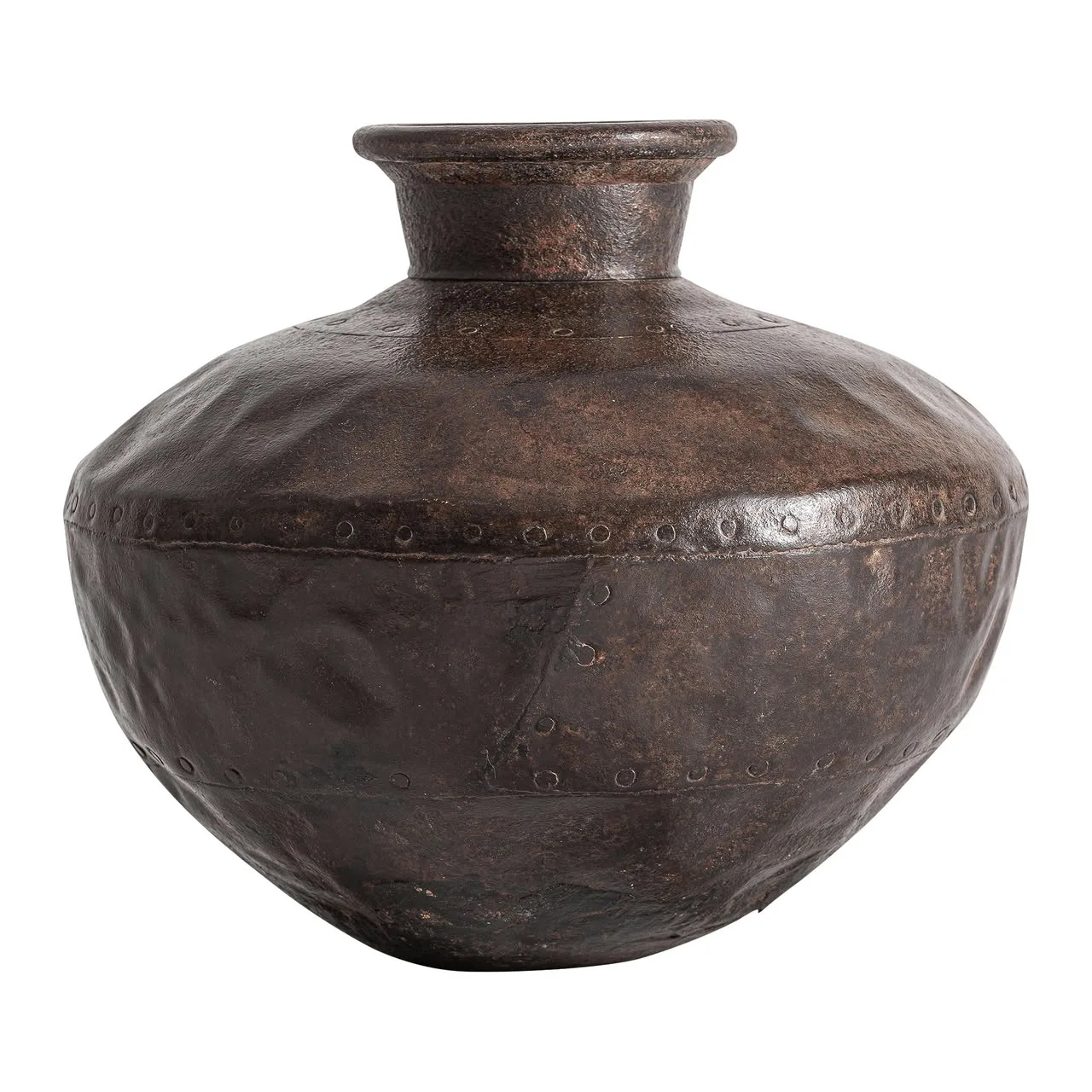 Tinaja Mahe de estilo rústico, fabricado en hierro en color tonos en marrón.