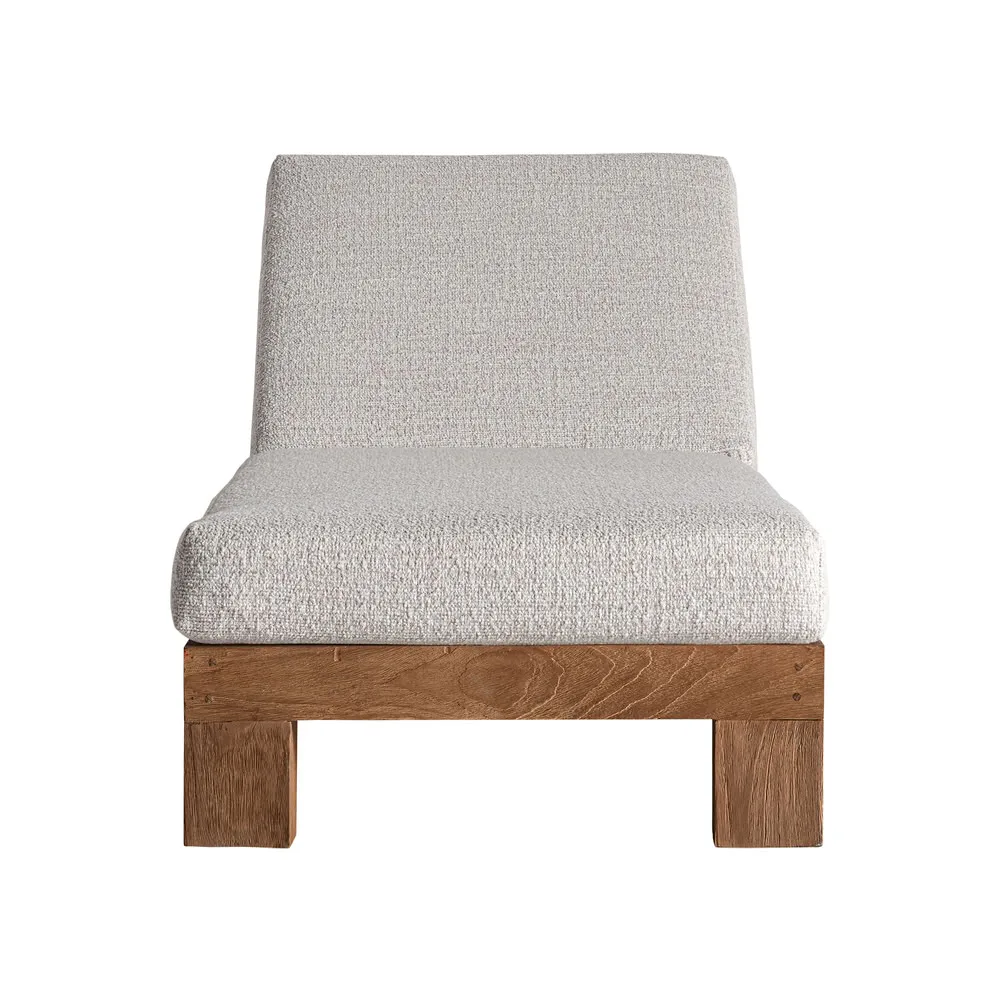 Tumbona testa de estilo colonial fabricado en madera de teka en color marrón combinado con polipropileno reciclado y espuma. Producto desmontable elevable desenfundable.