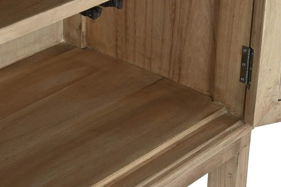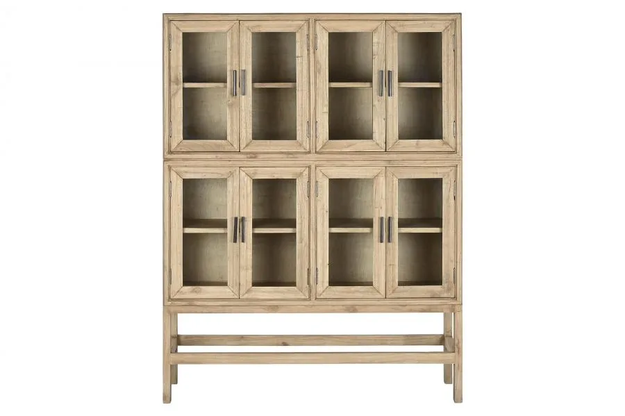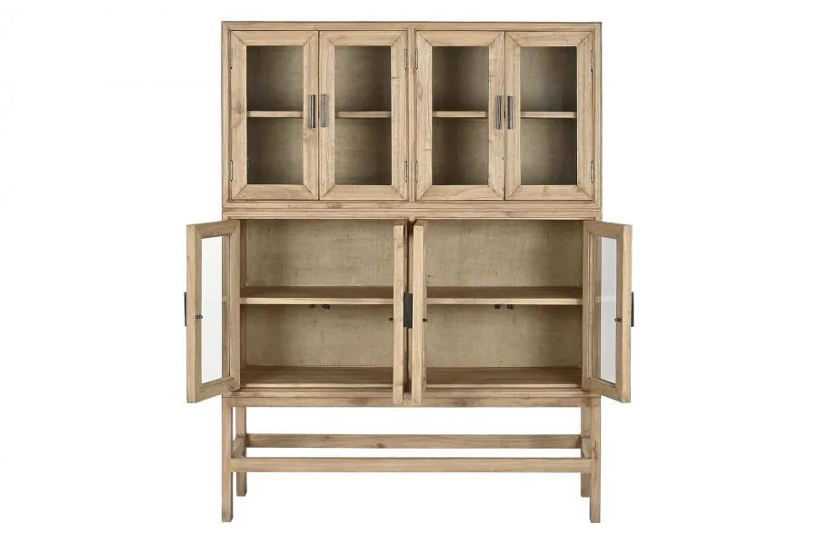 Vitrina de madera de mindi en color natural con puertas y estantes de cristal, de estilo tradicional y acabado elegante. Su diseño acristalado permite exhibir vajillas, libros y objetos decorativos con estilo, aportando luminosidad y amplitud visual al espacio. Una pieza clásica y funcional ideal para comedores y salones. Mide 120 cm de ancho, 41 cm de fondo y 160 cm de alto.